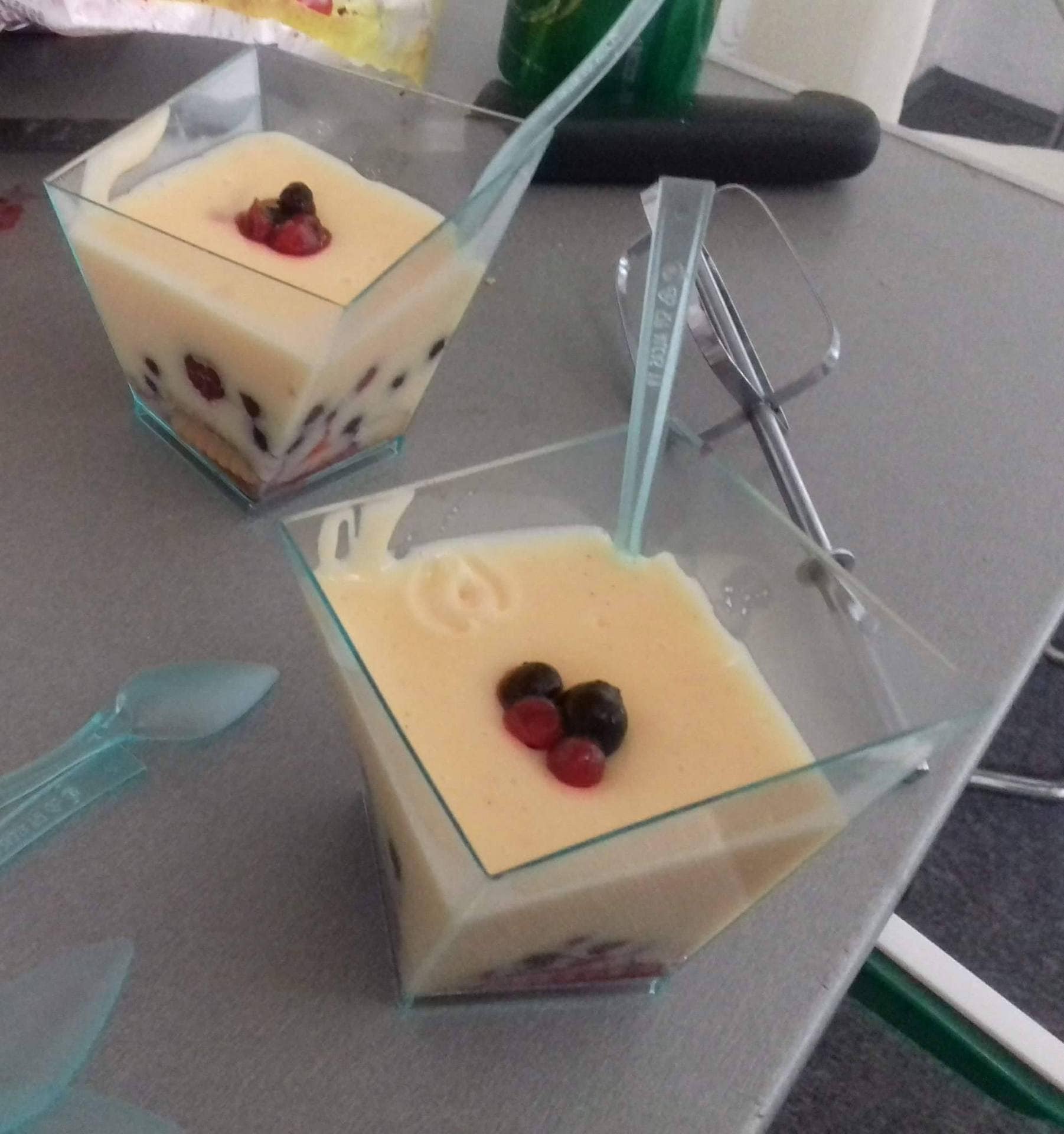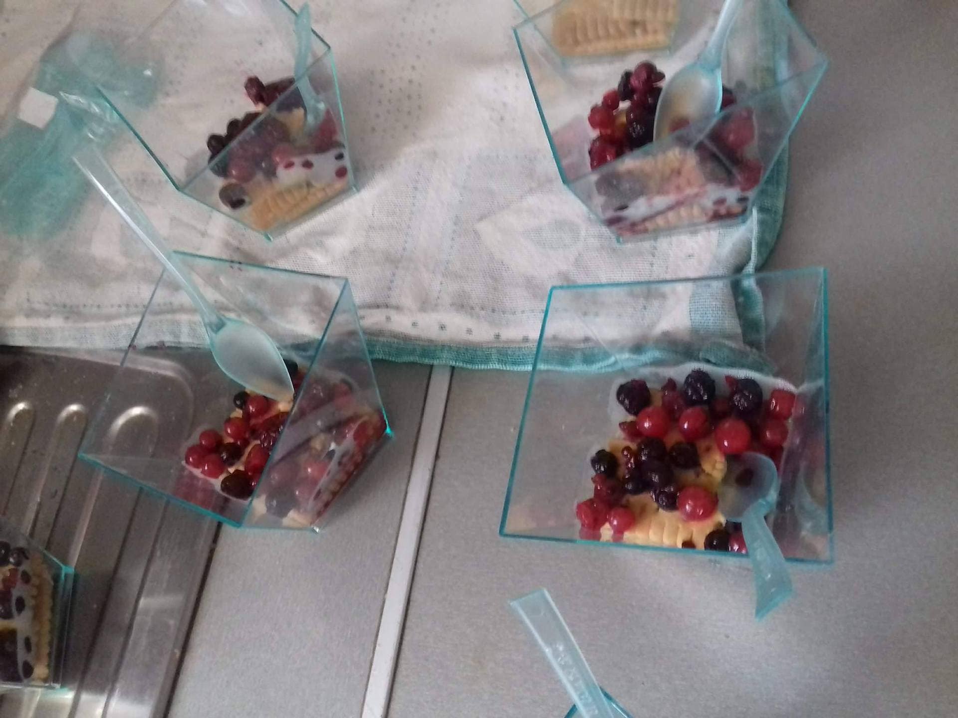 Na petit kekse slažite šumsko voće (koristim smrznuto šumsko voće, ali može ići i svježe), zatim sve zajedno prelijte pudingom i ostavite da se hladi par sati u hladnjaku |