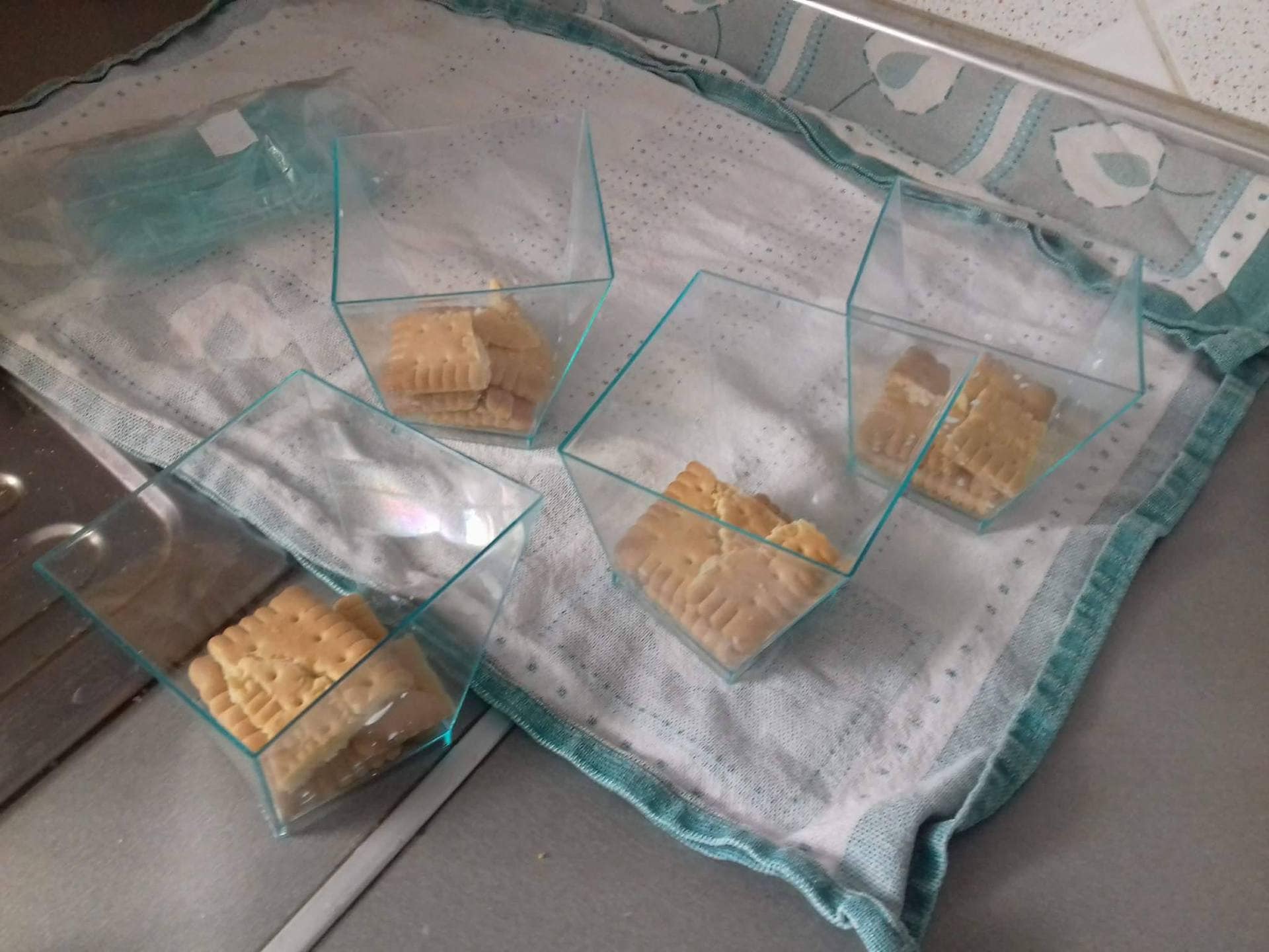 Petit kekse natopite u mlijeko, potom složite 2 do 3 sloja u kalup ( keksi imaju funkciju biskvita ). |